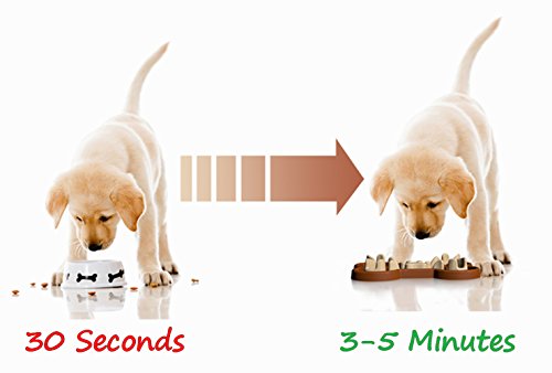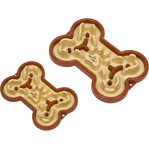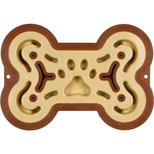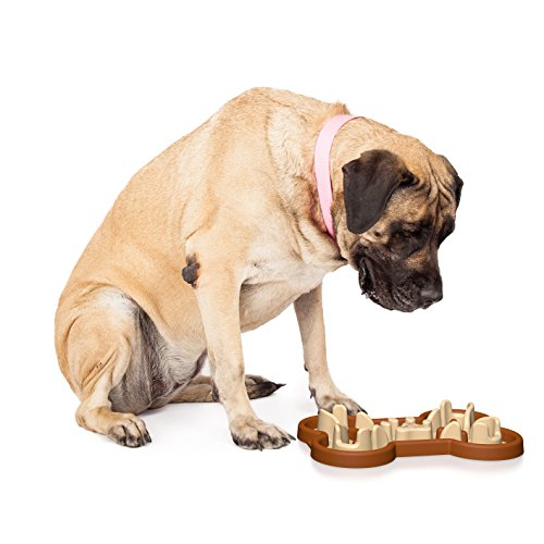 - Feature : ✔ Slow down feeding time with this cute bone shape slow feeder dog food bowl. Just sprinkle dry or moist kibble into the dish. Great for flat nosed dogs too! / ✔ Your dog will feel great after every meal. No more tummy aches, diarrhea or vomiting by fast eaters. Better than homemade remedies or food stuffed dog toy. / ✔ No mess, flipping or sliding across the floor like stainless steel and plastic dog bowls. 100% PetSafe: made of food grade PVC and durable BPA free silicone. / ✔ Your dog uses its tongue to work around the interactive slow feed bowl and puzzle maze. It's a fun and mind stimulating game. Easy to hand wash. / ✔ Built to outlast the toughest dogs. If your dog somehow destroys or chews up the bowl in the first year, email us a photo and we'll replace it free.