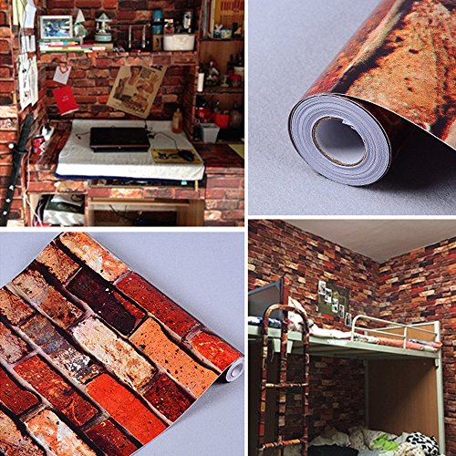 -. Title : SimpleLife4U Country Rustic Brick Shelf Drawer Liner Prepasted Contact Paper Coffee Shop Wall Sticker 17.7inch by 9.8 Feet