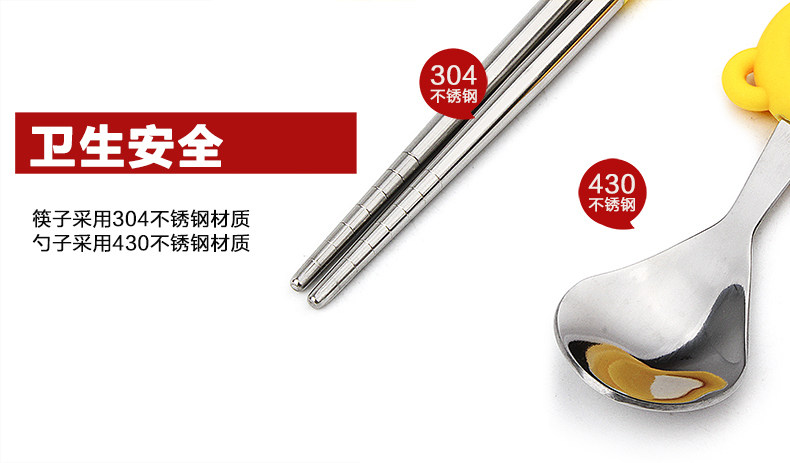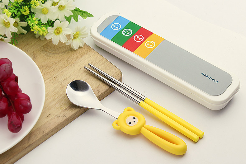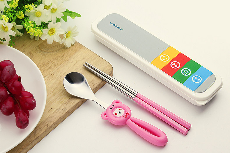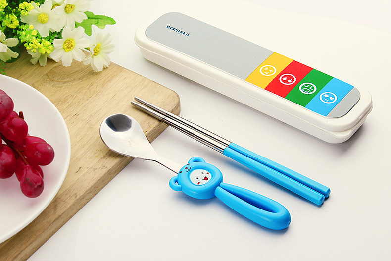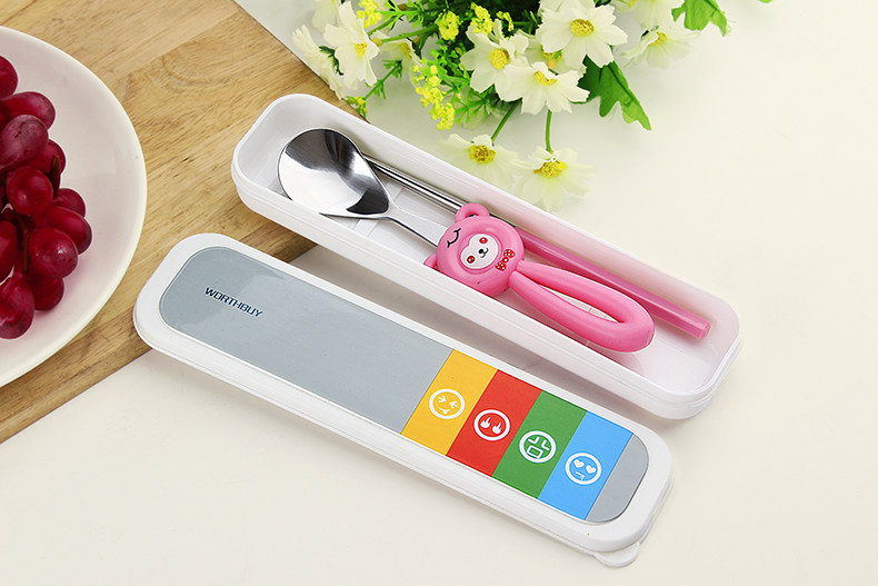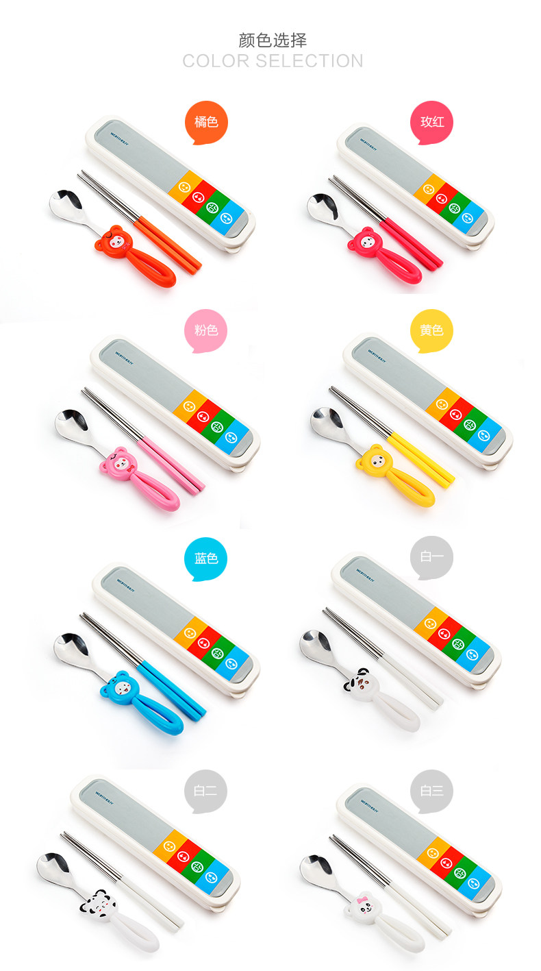 可爱卡通不锈钢便携餐具套装 创意勺子筷子盒 学生儿童旅行三件套