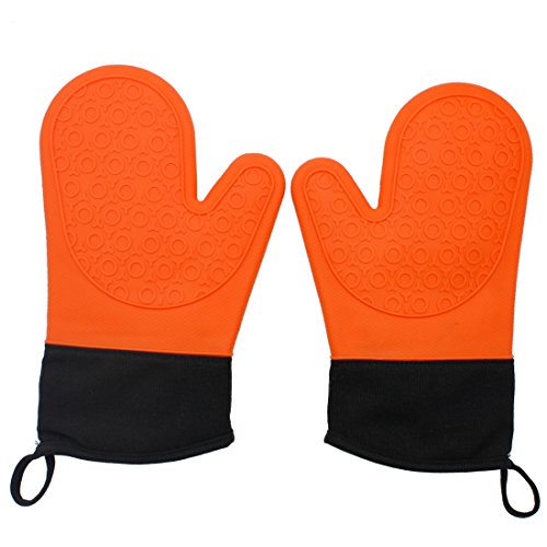 Lovidea Kitchen Professional Silicone Oven Mitts and Pot Holders Heat Resistant - 1 Pair (Orange) - Non-slip Microwave Oven Gloves with Quilted Cotton Lining