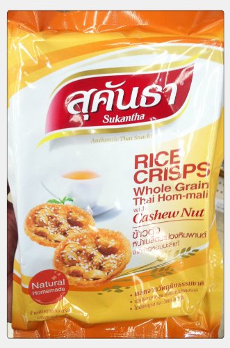 -. Feature : Sukantha Rice Crisps Whole Grain Thai Hom-mali with Cashew Nut 80g. / Rice Cracker / Made from Natural Ingredients(Thai Hom-mali Rice,Cashew Nut and White Sesame) / High Fiber and Cholesterol Free / No MSG / No Preservatives Added