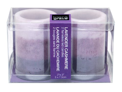 Kiera Grace 2 by 3-Inch Tri-Layer LED Pillar Candles, Mini, Lavender Cashmere Fragrance, Set of 2
