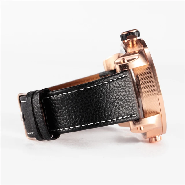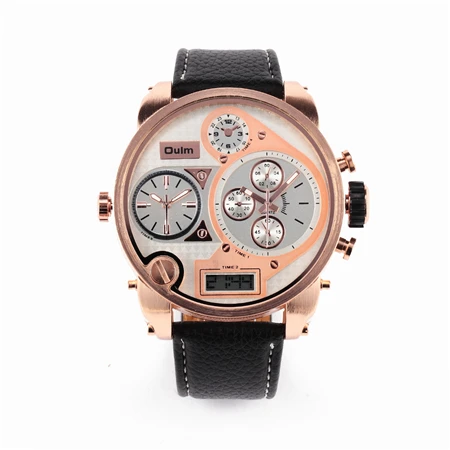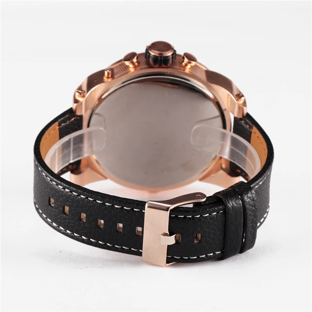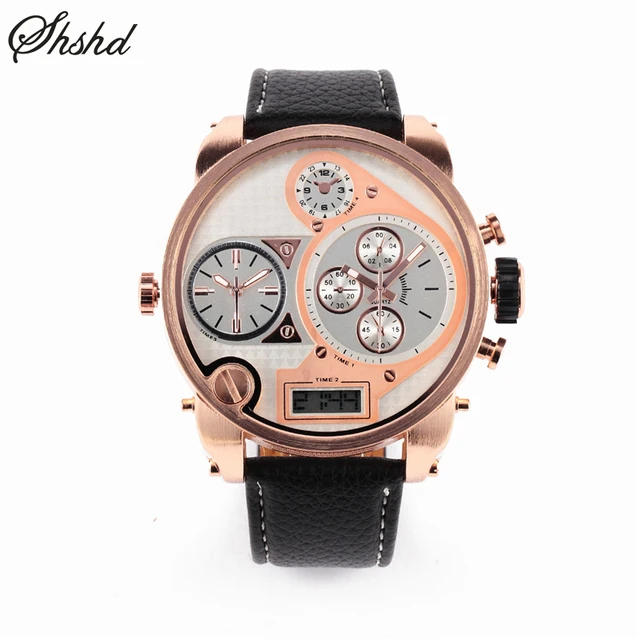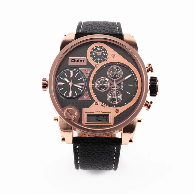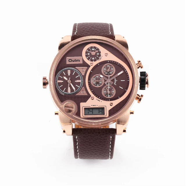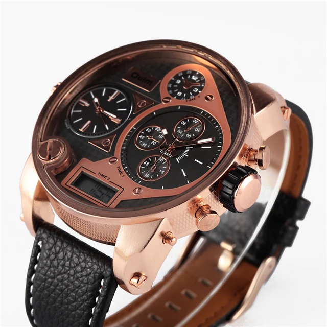 | [해외] 울트라 큰 시계 다이얼 비즈니스 캐주얼 남성 시계 아날로그 듀얼 디스플레이 손목 가죽 밴드 여러 시간대 Reloj 험 브레 |