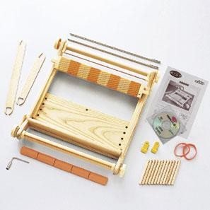 | 古布などお好きな布地を細長く裂いてたて糸に織り込み、自分好みの風合いの布地を楽しむ手織りのひとつとして注目を集めている裂き織り。毛糸等を使った手織りでも使用できます。持ち運びに便利な取手の付いた箱入り。長いサイズ(約4mまで)の織りも省スペースで。従来広いスペースを必要とした長いたて糸の準備が、手織り機本体内だけでできます。 |