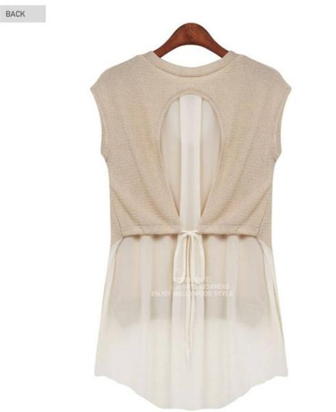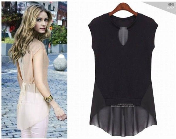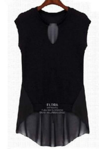 Vネック ノースリーブ シフォンシャツ ドッキングブラウス トップス ブラック