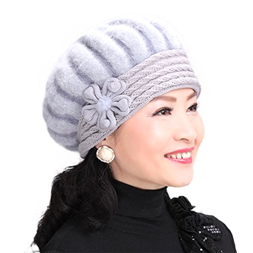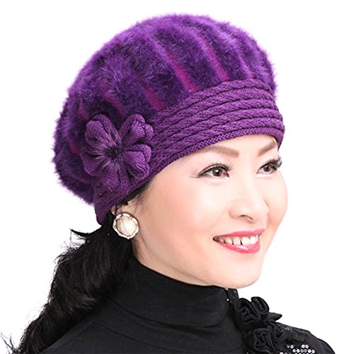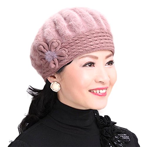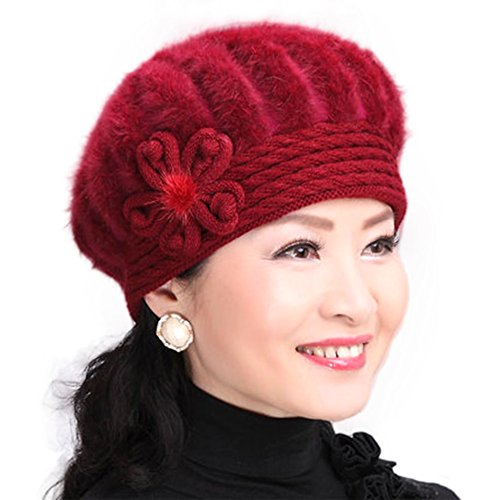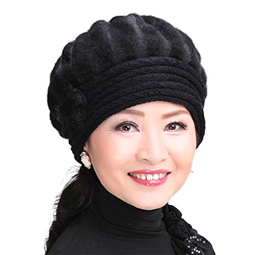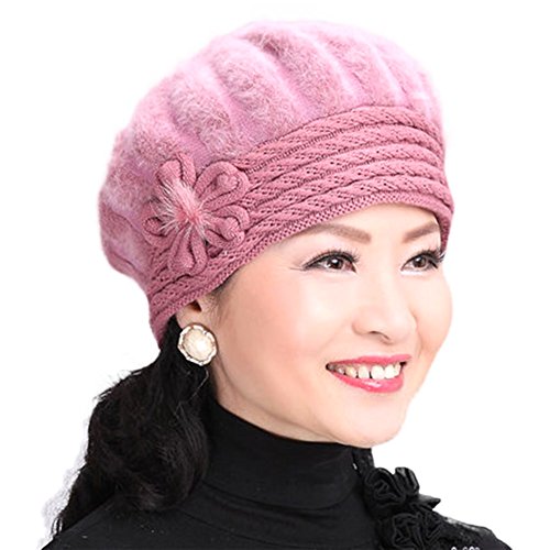 Tthy Mer Elderly Female Winter Rabbit Fur Knitted Wool Hat Lady Mom Warm Beret Cap