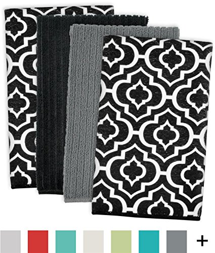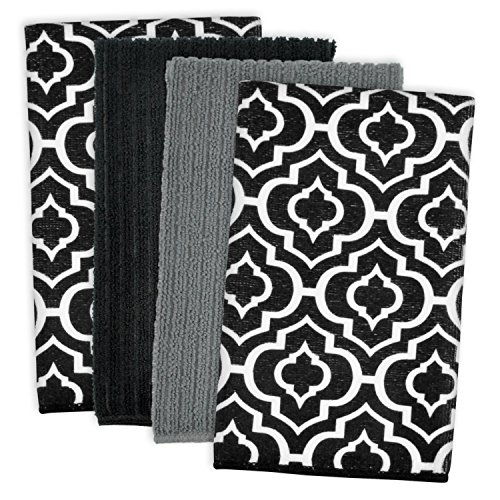 DII Microfiber Multi-Purpose Cleaning Towels Perfect for Kitchens, Dishes, Car, Dusting, Drying Rags, 16 x 19", Set of 4 - Black Lattice
