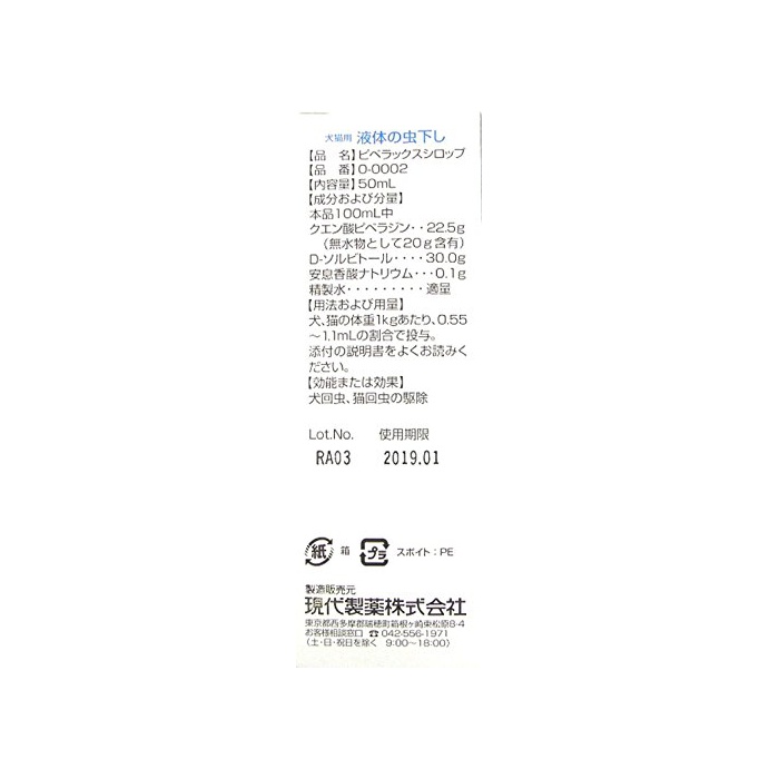 원본상품명:ゲンダイ (GENDAI) ピペラックスシロップ 50ml (動物用??品)