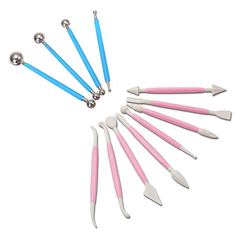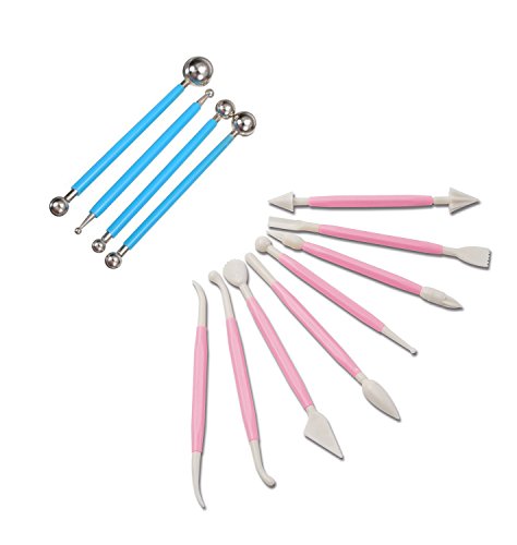 Asayu 8 Pieces Plastic Crafts Clay Modeling Tools with 4 Pieces Metal Ball Stylus Pottery Sculpting Modeling Tools Fondant Tools