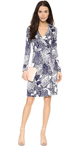 Detail-rich floral prints trim this silk Diane von Furstenberg wrap dress. Long sleeves.