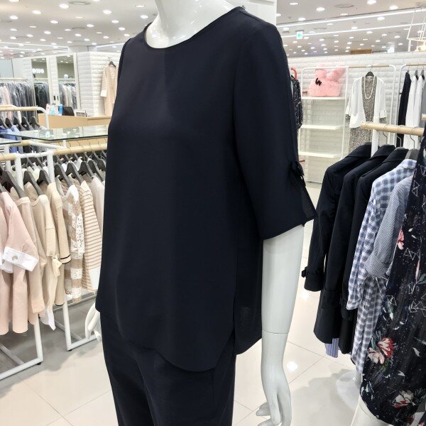 5부소매기장에 심플한 쉬폰블라우스입니다자겟에 넣어입기도 단독착용하셔도 깔끔합니다