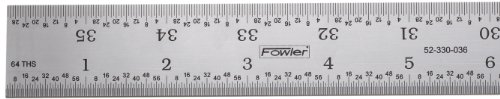 Fowler 52-330-036 Rigid Steel Rule with Satin Chrome Finish, 4R Graduation Interval, 36" L x 1.25" W x 0.04" Thick