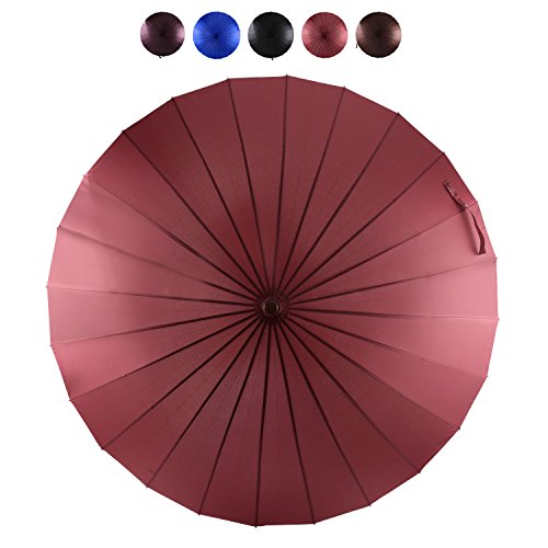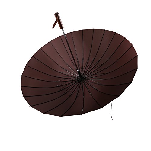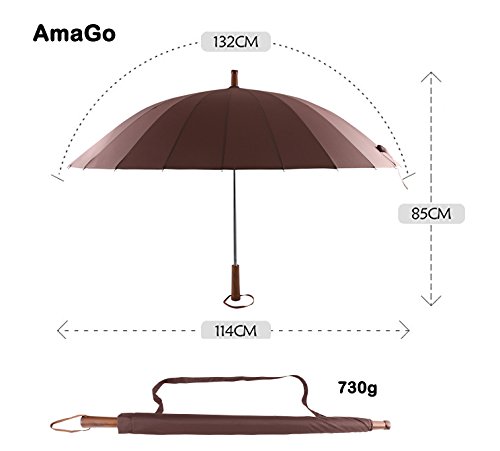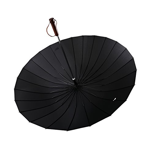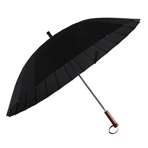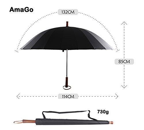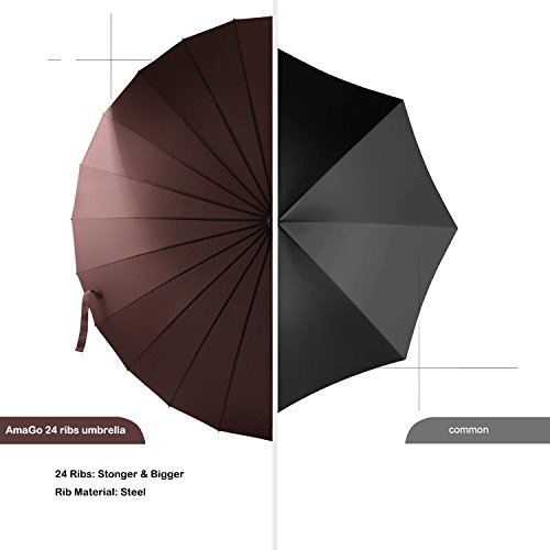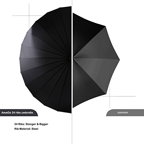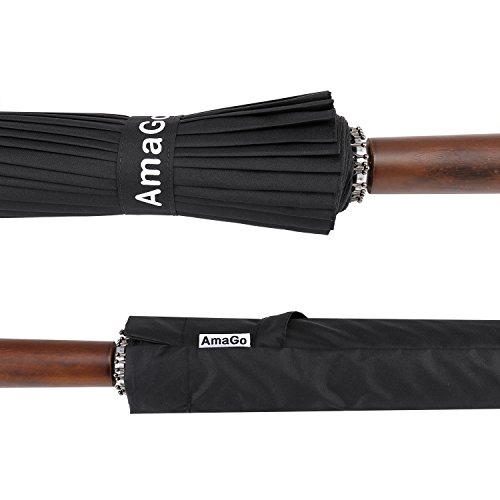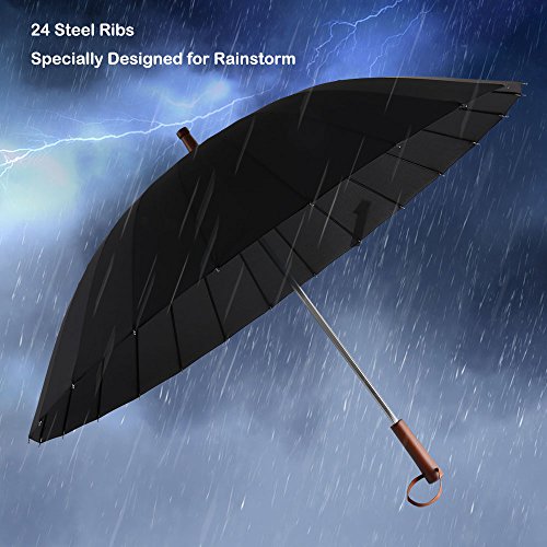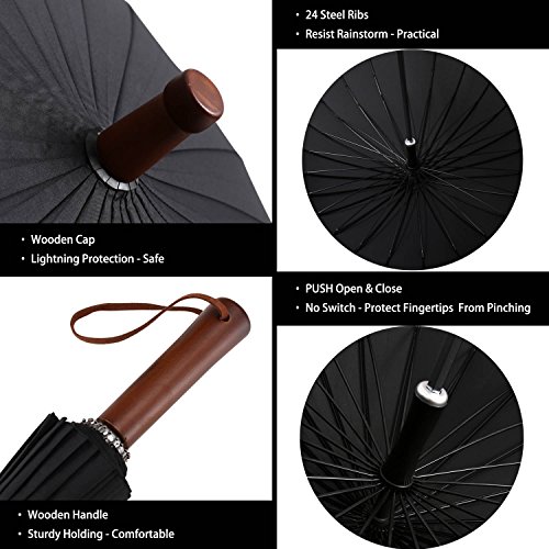 -. Title : AmaGo Umbrella - 24 Steel Ribs for Rainstorm, Windproof, Waterproof, Wooden Cap & Wooden Handle for Lightning Protection, Push Open & Close, Long Straight Umbrella with Carrying Bag