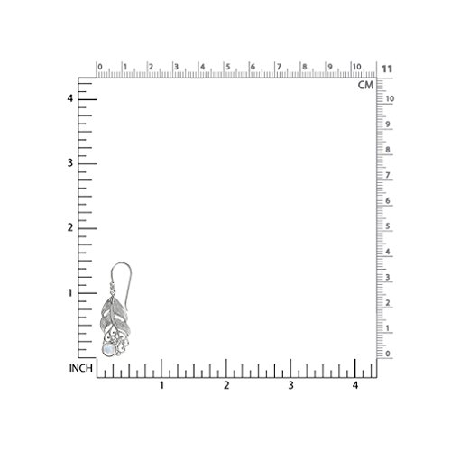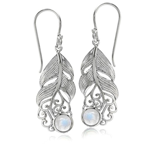 Natural Moonstone 925 Sterling Silver Feather Victorian Style Dangle Hook Earrings
