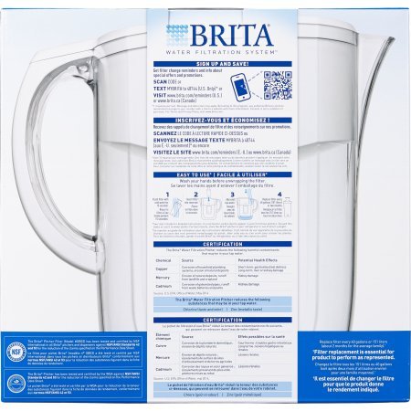 -. Feature : Large, white, Brita 10 cup water pitcher with 1 easy to use filter / Reduces chlorine taste and odor, copper, mercury and cadmium to deliver healthier, great tasting water / BPA free white Brita pitcher with sticker filter change indicator and easy fill lid / Sticker filter indicator notifies you when you need to change the water filter