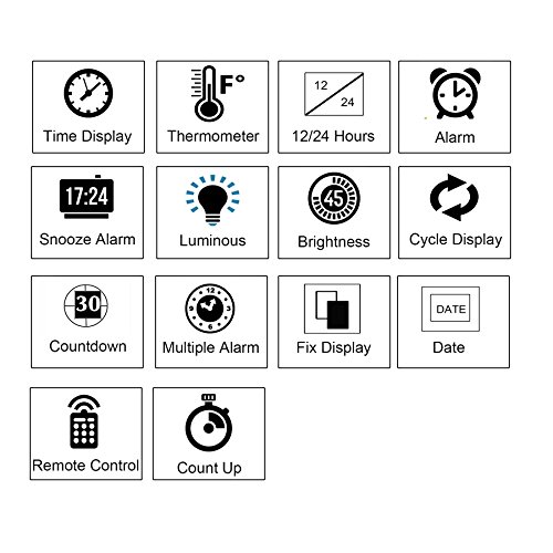 -. Title : Pinty Large LED Digital Wall Clock - Time/Date/Temperature/Alarm/Countdown/Light - Modern Design