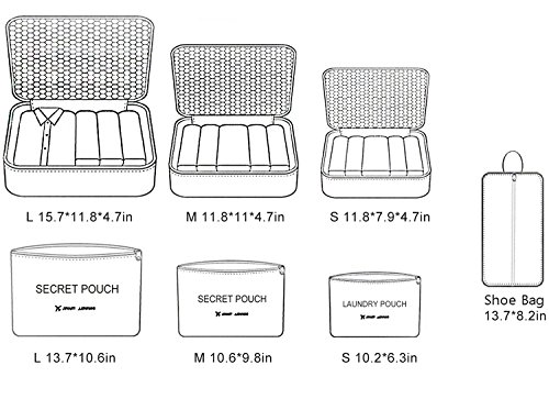Pack your luggage quickly, easily and securely with Mossio Travel Organizers! LIGHTWEIGHT DURABLE TRAVEL ACCESSORY -Airport checkout becomes easier -Comes in seven convenient sizes to separate shirts, jeans, shoes or other small gadgets -Lightweight and avoids adding any extra weight to the luggage MULTI-PURPOSE EASY PACKING SOLUTION -Constructed of high-quality, light weight fabric with finished interior seams to withstand the tear of traveling -Open mesh design makes it easy to locate items -The webbing handle great for easy grabbing, carrying separately, or hanging -Double zipper pulls makes it easy to pack and even easier to unpack YOU WILL RECEIVE -3 Packing Cubes - Large (15.7" x 11.8" x 4.7") Medium (11.8" x 11" x 4.7") Small (11.8" x 7.9" x 4.7") -3 Laundry Pouch - Large (13.7" x 10.6") Medium (10.6" x 9.8") Small (10.2" x 6.3") -1 Shoe Bag 100% SATISFACTION GUARANTEED -We love our customers and are obsessed with customer satisfaction. If for any reason you don't absolutely adore your new packing cubes, just send it back our way for a full refund - GUARANTEED No need to struggle with how to pack your luggage securely any more! Click "Add to Cart" yellow button above and get it now! 0 |