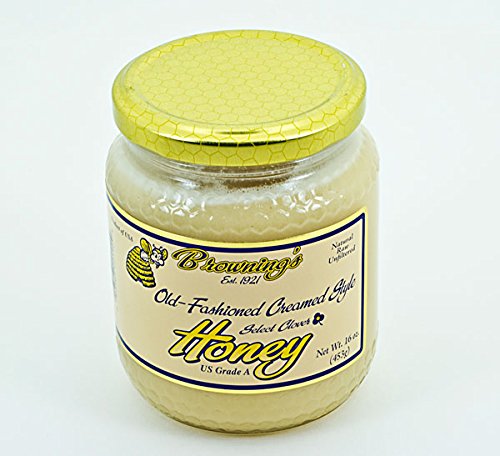 -. Feature : Pure, Grade A, natural, raw, unfiltered clover honey, prepared with Browning's exclusive process to achieve the finest creamed honey you will find anywhere / Presented in our exquisite imported Italian glass gift jars, each jar is embossed with raised honeycomb bands, and is capped with a honeycomb patterned gold foil lid.