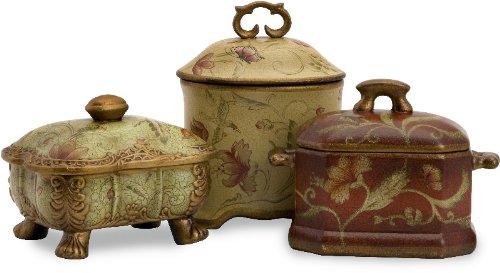 -. Feature : Stunning set of three delicate porcelain trinket boxes / Each is hand-painted in a unique yet coordinating motif / Measures 5.5 x 4 x 6; 6 x 5 x 7"; and 8.5 x 5.5 x 8" / Due to the artisan crafted nature of this product, no two will be identical / IMAX Worldwide-One Source. A World of Choices!
