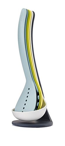 -. Feature : Compact space-saving design / Magnetic handles hold tools securely together / Specially designed storage stand / Tools heat resistant up to 200 C/ 392 F / Set includes: Slotted spatula, Spaghetti server, Slotted spoon, Solid spoon, Ladle