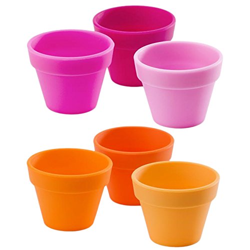 Petite Pots Silicone Mini Cups Set -- Pack of 6 Silicone Baking Pots (2 Colors). (Pink and Orange (6 Count))