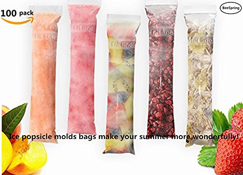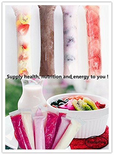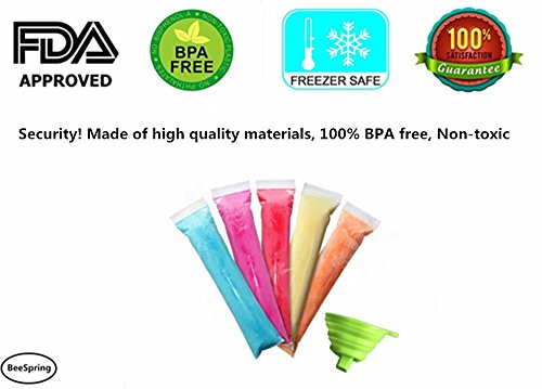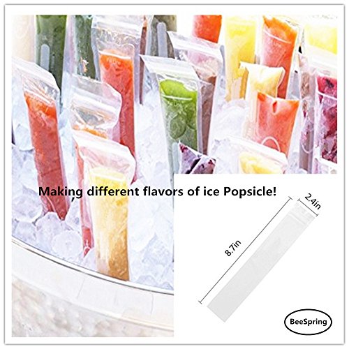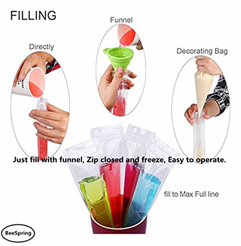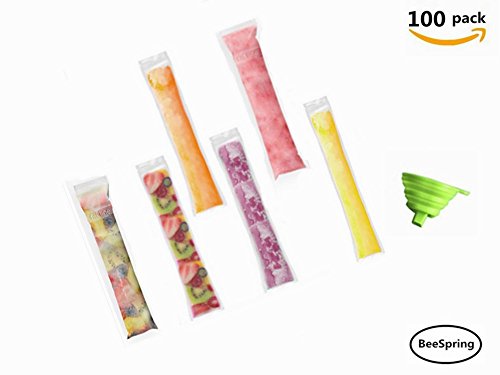100 Pcs Ice Popsicle Mold Bags , BeeSpring Zip-Top Disposable DIY Ice Pop Mold Bags Zip popsicle bags Storage bag Ice candy bag freezer bag Popsicle Bag with Funnel- Clear Color
