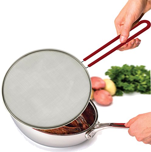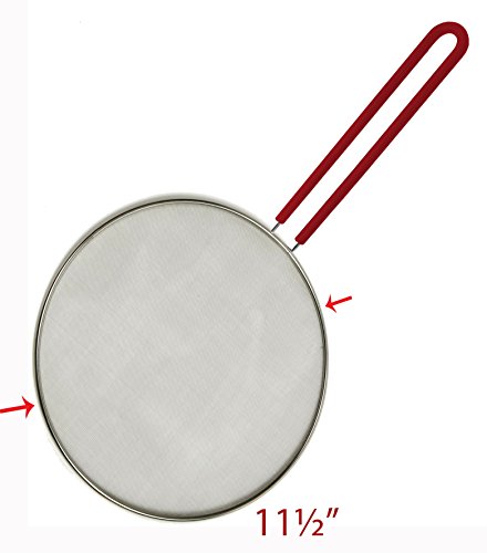 Stainless Steel Splatter Guard with Silicone Handle - Complete Corrosion Resistant Body - Superfine Mesh, 11"