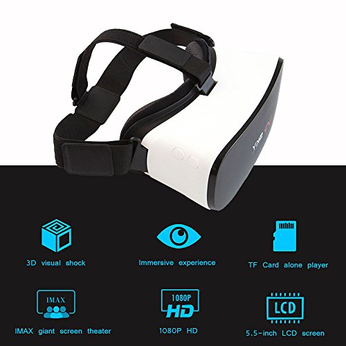 -. Binding : Electronics -. Brand : DMYCO -. Color : VR-SKY -. EAN : 0602452220595 -. Feature : ★3D IMAX giant screen cinema ☆ IMAX private theater with you, 360° panoramic visual field, embedded with nine-axle sensors, supports 360°view of head tracking(360° head somatic sensory control),provide more authentic immersive Virtual Reality experience for you. Movies, live concerts, NBA, 3D animation, show... Just enjoy it! / ★Massive resources watch online ☆ Phone no needed, just connect to WIFI, u disk supported and TF Card alone play. Without Smartphone & PC, you can also enjoy 1080p HD Movie / 3D Movie. Just go and search what you like. / ★HD picture quality, all in the eyes ☆ Supports resolution up to 1920*1080, Equipped with 5.5inch TFT-LCD display screen, Refresh Rate at 60Hz(Much higher FPS than average performance), offering more high-definition & fluent frame with low afterglow. / ★Ergonomic design of the lens ☆ Anti-blue rays Aspheric Lenses, more pure and offers Undistorted image. You will not feel visual fatigue and dizzy even you use it. Moreover,suitable for people within 0 - 800 degrees myopia, and 0 - 400 degree hyperopia. 100° FOV (super similar to human eyes, giving you a broad perspective) / ★Immersive gaming experience ☆ 360° panoramic visual field immersive glasses, bring you into a wonderful game world, fight side by side with your buddies, are you ready? Anytime, anywhere, play what you want to play. Just enjoy your games with a controller for easily operate. -. Label : DMYCO -. Manufacturer : DMYCO -. MPN : VR-SKY -. OperatingSystem : Andriod 4.4 or above -. PackageQuantity : 1 -. PartNumber : VR-SKY -. ProductGroup : Speakers -. ProductTypeName : CE_ACCESSORY -. Publisher : DMYCO -. Studio : DMYCO -. Title : 3D VR Headset, DMYCO VR All in One Headset 3D Glasses Virtual Reality Headset WIFI Support Android 4.4 Octa-Core 2G/16G for Movies Games 3D Video Glasses (Phone No Needed, Halloween Christmas Gifts) -. UPC : 602452220595