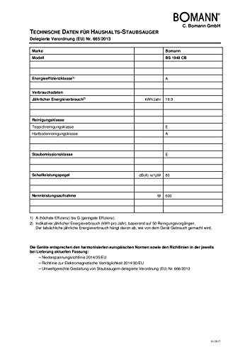 Bomann BS 1948 CB Hand-/Bodenstaubsauger 2in1 beutellos, Hepa-Filter, Wandhalterung
