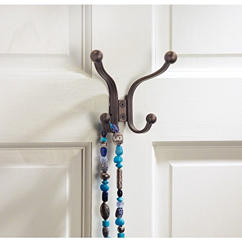 InterDesign York Lyra Over Door Organizer Hooks for Coats, Hats, Robes, Clothes or Towels – 2 Dual Hooks, Bronze