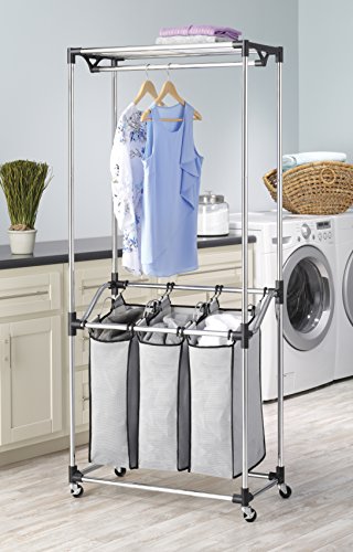 - Includes 3 large capacity removable laundry bags for separating your colors from whites and simplifing your laundry day. The sorters have handles for easy sorting and lifting.