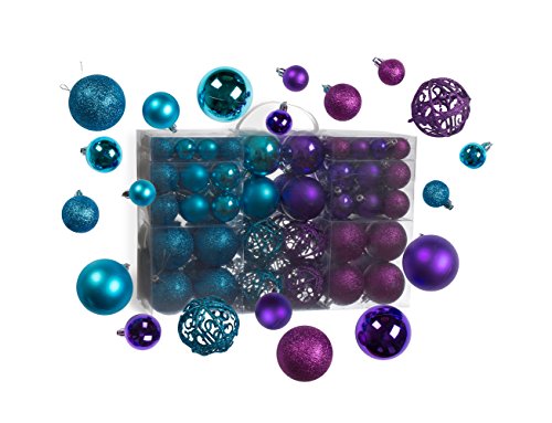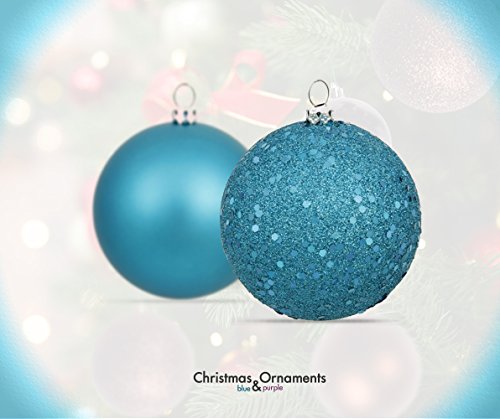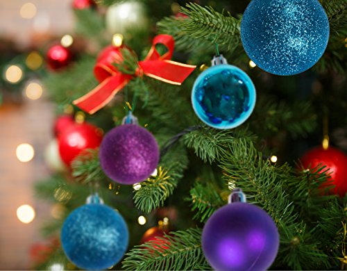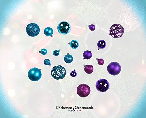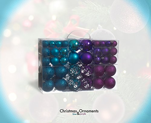 100 Purple And Blue Christmas Ornament Balls Shatterproof + 100 Metal Ornament Hooks, Hanging Ornaments For Indoor/Outdoor Christmas Tree, Holiday Party, Home Decor
