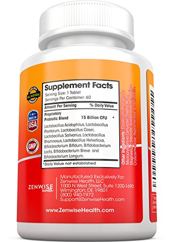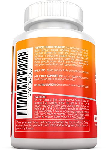 Build a Strong & Healthy Immune System Defense - Whether you're looking for probiotic for men or probiotics for women, this supplement is ideal for everyone in the family. Zenwise Health's Probiotic tablets contain 15 billion cultures and is designed as an essential booster to make your immune system as strong and healthy as possible. They do that by promoting healthy intestinal flora. The bad bacteria are pushed out so that you can feel and look better.