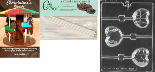 Cybrtrayd 'Sports Hearts Lolly' Valentine Chocolate Candy Mold with 25 4.5-Inch Lollipop Sticks and Chocolatier's Guide