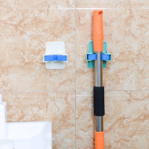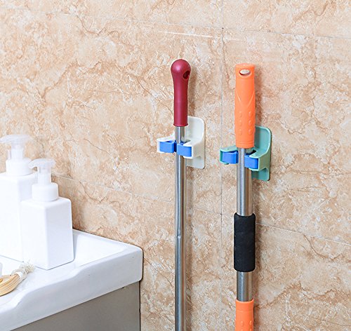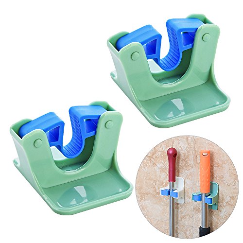 LOHOME Mop and Broom Holder - Nail Free Adhesive Wall Mount Broom and Gripper Garden Storage Rack Garage Storage Systems Broom Organizer (Green2)