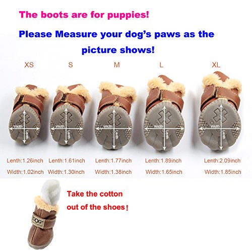 Studio : WinSoon Publisher : WinSoon Binding : Misc. Product Description **Please focus on the size chart in the description and choose correct size!!! Free shipping via USPS: 2-5 working days AOG The boots inside are added velvet, warm for dogs in winter Rubber sole with anti-skid function, make your pet more secure High quality raw material with fine craft, bring your dog special comfortable experience Special shoes design for small and medium dog including Yorkshire Terrier, Dachshund, Poodle, Teddy, Bulldog, Chihuahua, Bichon Frise and similar size dogs. Size available: XS=1# Insole: Length 1.26(in), Width 1.02(in) S=2# Insole: Length 1.61(in), Width 1.30(in) M=3# Insole: Length 1.77(in), Width 1.38(in) L=4# Insole: Length 1.89(in), Width 1.65(in) XL=5# Insole: Length 2.09(in), Width 1.85(in) Please allow 0.1 inches differs due to manual measurement. Computer display or other reasons, if the color and look a little different in kind, please buyers understand that we try to do the best, thank you! NOTE: Padding inside the shoes, please remove before use 0