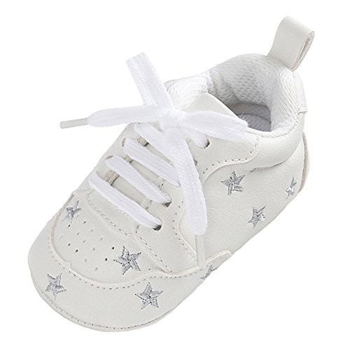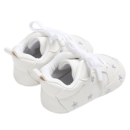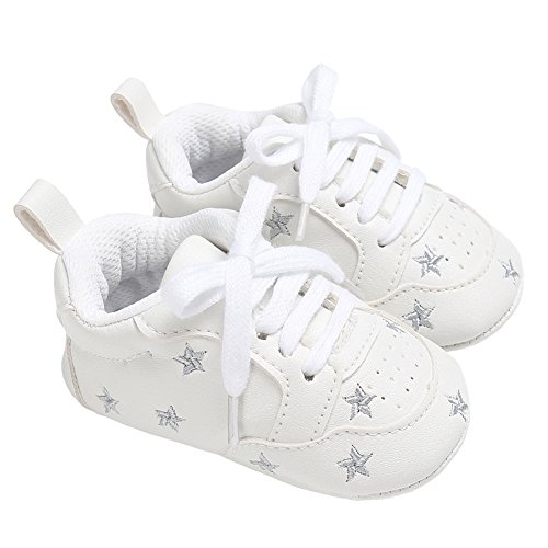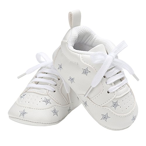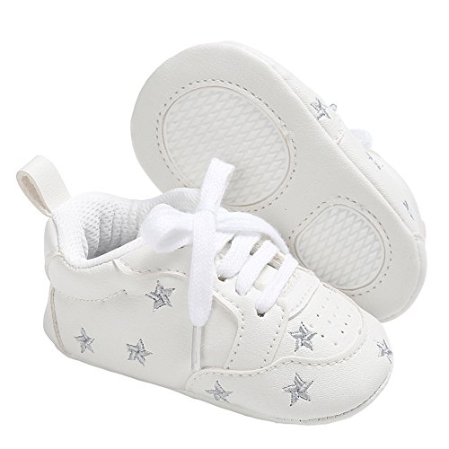 (Annnowl)/Gear/Walkers/DIRECT FROM USA/Annnowl Baby Sneakers Infants First Walkers Soft Sole Crib Shoes (0-6 Months, White Silver)