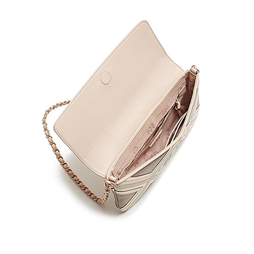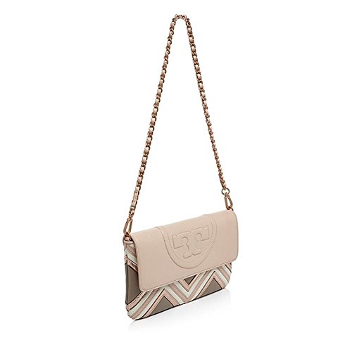 Product Description Statement logo embossing and metallic appliques set a luxe tone on this geo-patterned, flap front clutch with optional shoulder strap from Tory Burch. 0