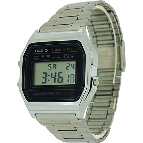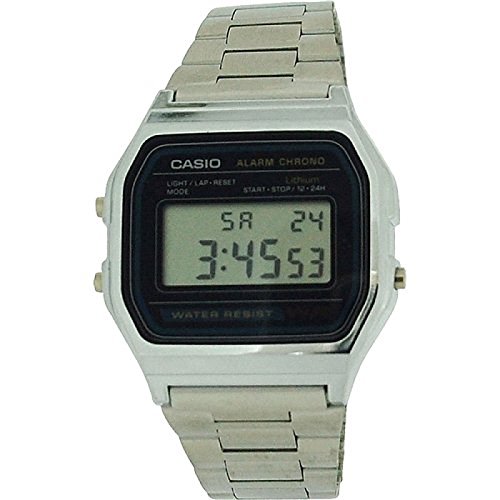 -. Title : CASIO A158WA Gents-Mens Digital Chronograph Silver Tone Metal Bracelet Watch