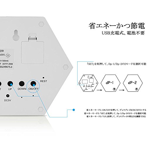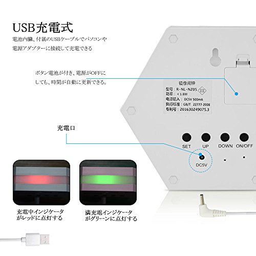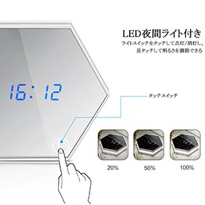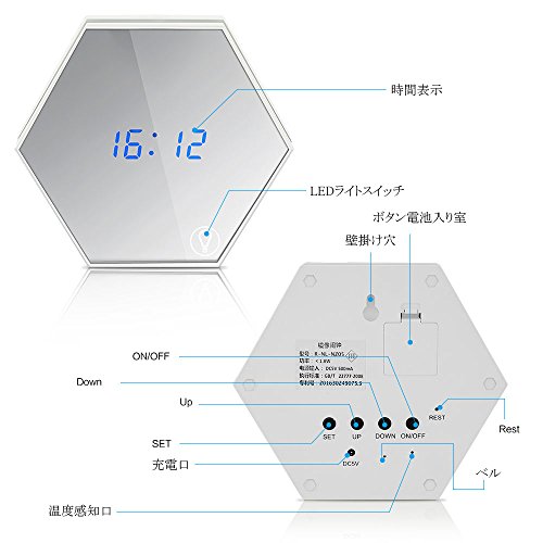 -. Feature : ✔ 機能は3つ:①液晶ディスプレー ②化粧鏡 ③ライト(明るさ調整可能)。誕生日プレゼント、引越し祝い、新築祝い、入学祝いや卒業祝いなどの各種祝い事のプレゼントにおすすめ。 / ✔ 表示内容 :カレンダー(年/月/日/時間)、温度。「SET」スイッチにより設定でき、簡単な日本語取扱説明書付、設定前に説明書をご読んでください。 / ✔ アラーム機能:3つの時間を設定可能、大音量出力、独り静かにガバッと起きられる。 / ✔ 充電可能:800mA/3.7Vリチウム電池内蔵、付属の充電用USBケーブルでパソコンや(DC/5V/500mA)電源アダプターに接続して充電できる。(ご注意:電力が不足と、ディスプレイが連続点滅し、すぐご充電ください。) / ✔ CR2032(3V)ボタン電池を内臓し、充電池がOFFに成っても時間はバックアップされる。