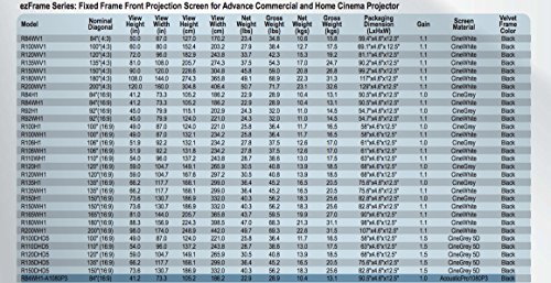 The ezFrame Series projector screen from Elite Screens is the perfect piece to create the ultimate home theater experience. Whether you have a dedicated media room or a casual set up in your living room, the ezFrame is designed to give the user a professional-grade screen at an affordable price. Hang this screen just like a large picture frame -at home, in the office, at a restaurant, or any other application that requires a high quality picture in a minimal amount of space. The lightweight metal frame is easy to assemble, and gives the screen material a tensioned surface for the flattest possible viewing experience. Every frame comes standard with a stylish black velvet matte finish to eliminate projector glare and absorb light overshoot. The overall effect is a superior picture quality that is equipped to handle active 3D, 1080P and 4K projector resolutions.Feature