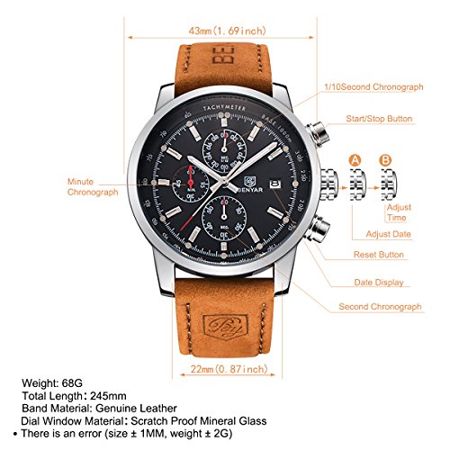 FASHION WRISTWATCH: This watch is made of high qualitiy brown genuine leather strap with pin buckle, Imported Japanese quartz movement,keep the time precise,Battery life is up to 36 months, very durable.