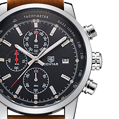 BUSINESS WRISTWATCH: Full Functional Chronograph watch with 12-Hour Dial, Luminous Hands and Calendar-Date Display Analog and 30M Waterproof. And the Classic Black Dial Plate is fit for all eventualities.
