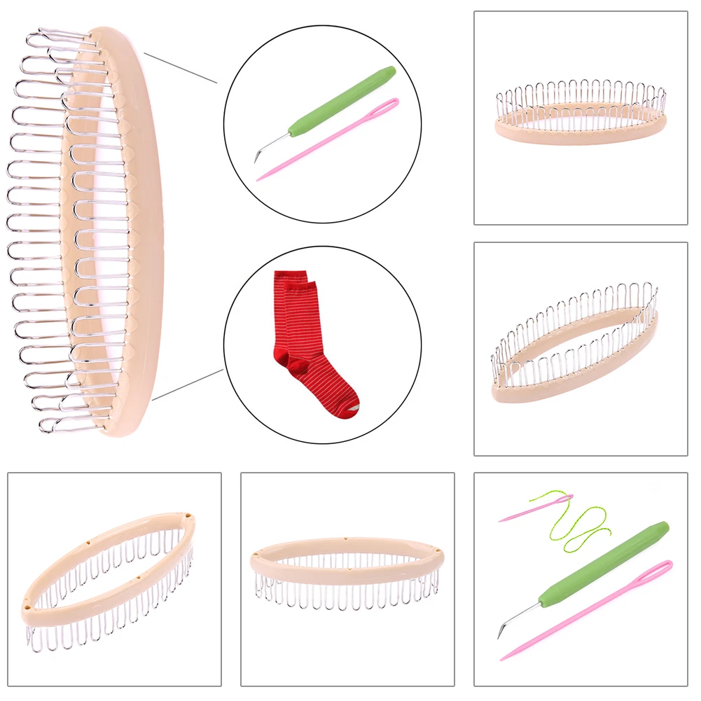 Package included: 1 X Socks Weaving Tool 1 X Crochet 1 x Pin