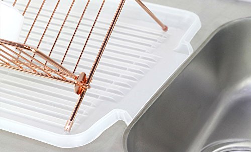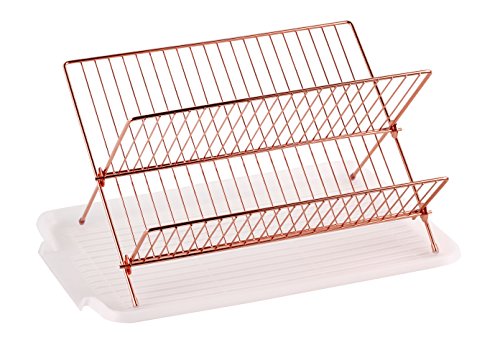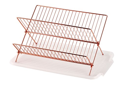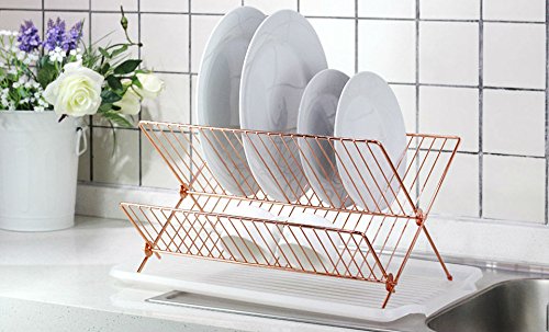 Deluxe Chrome-plated Steel Foldable X Shape 2-tier Shelf Small Dish Drainers with Drainboard (Copper)