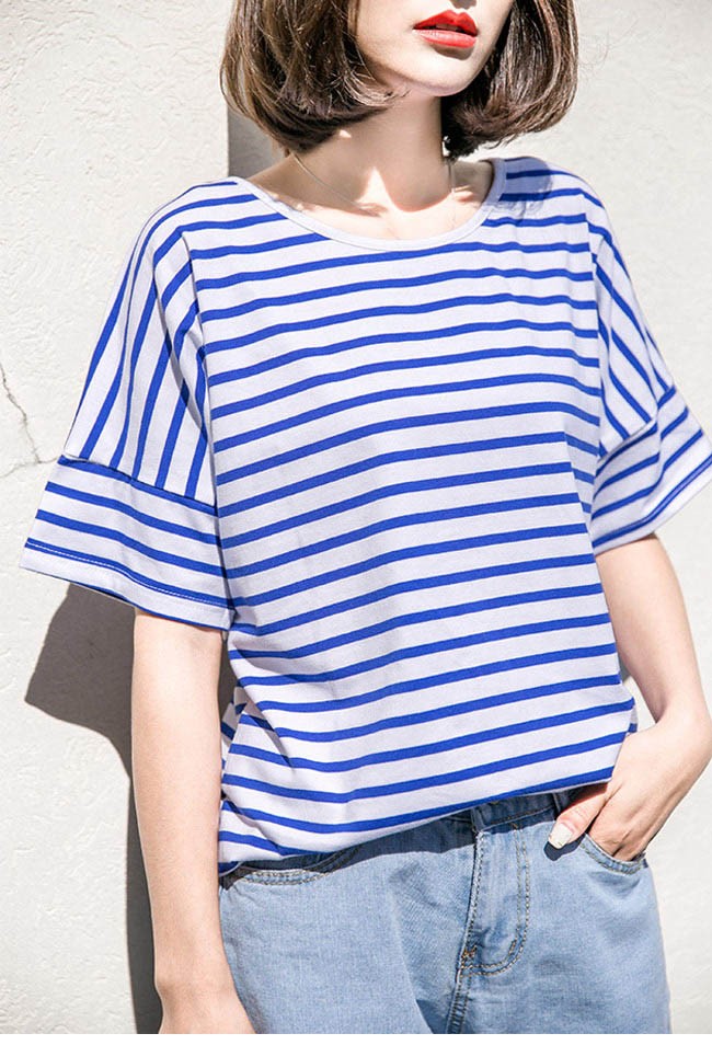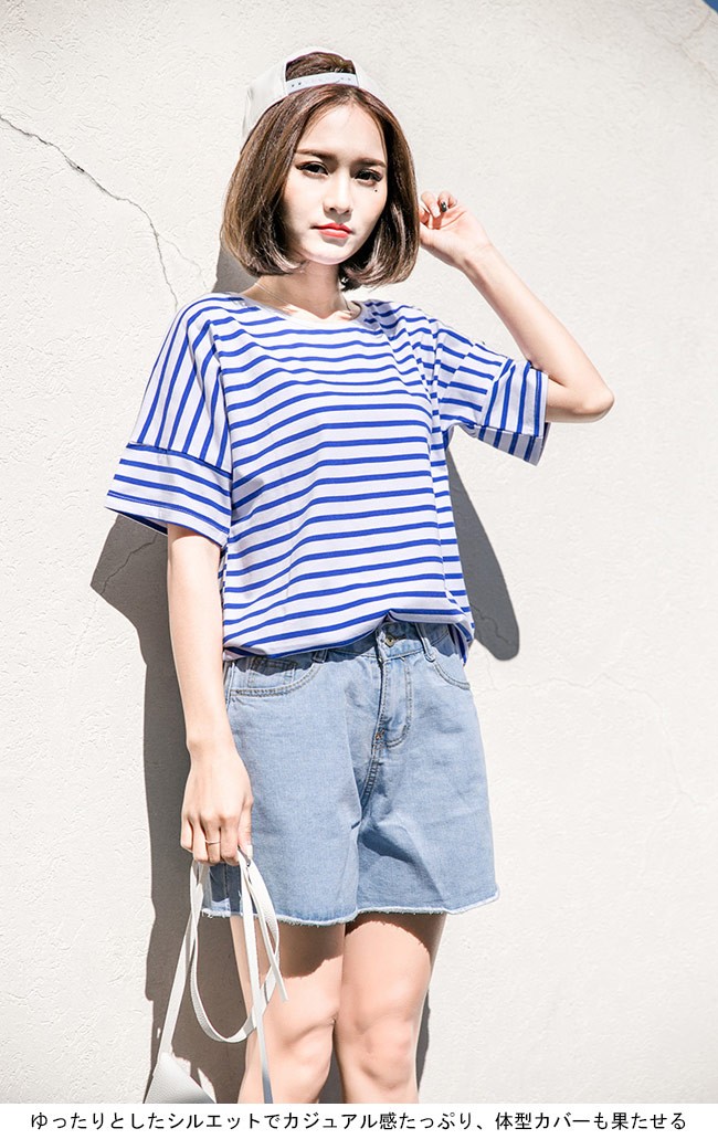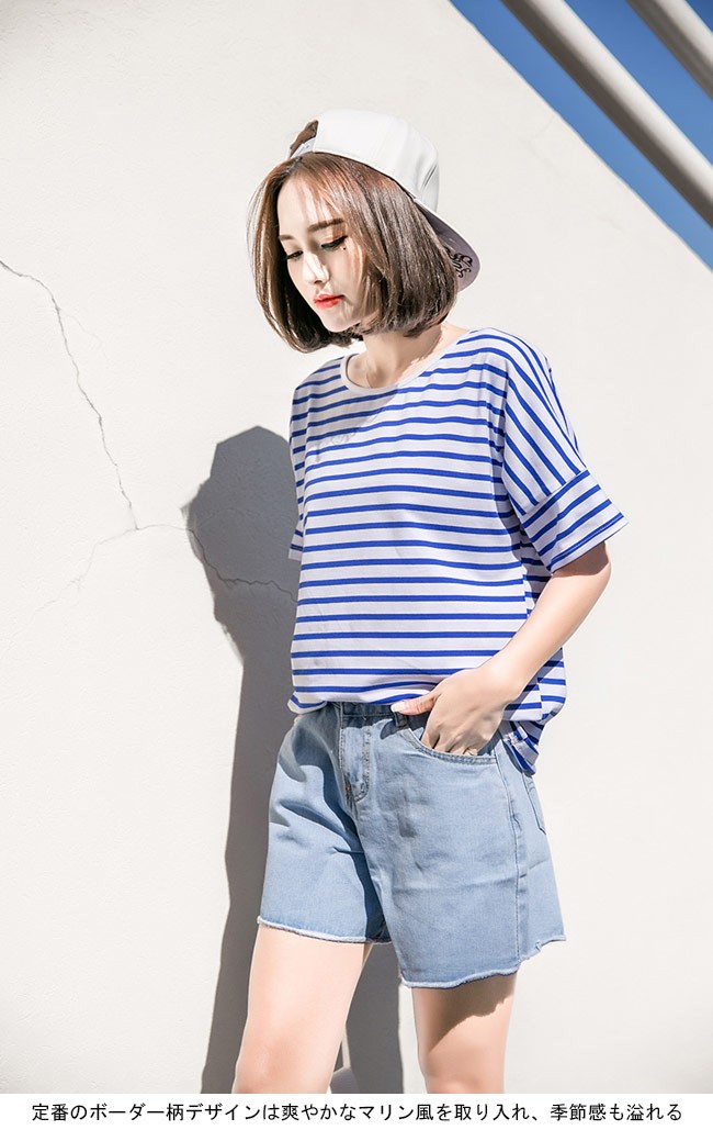 | 商品名 | レディース 半袖Tシャツ 体型カバー ボーダー柄 Tシャツ 五分丈袖 マリンセーラー 女性用 カットソー ゆったり 夏物 薄手 スクール風 カジュアル |