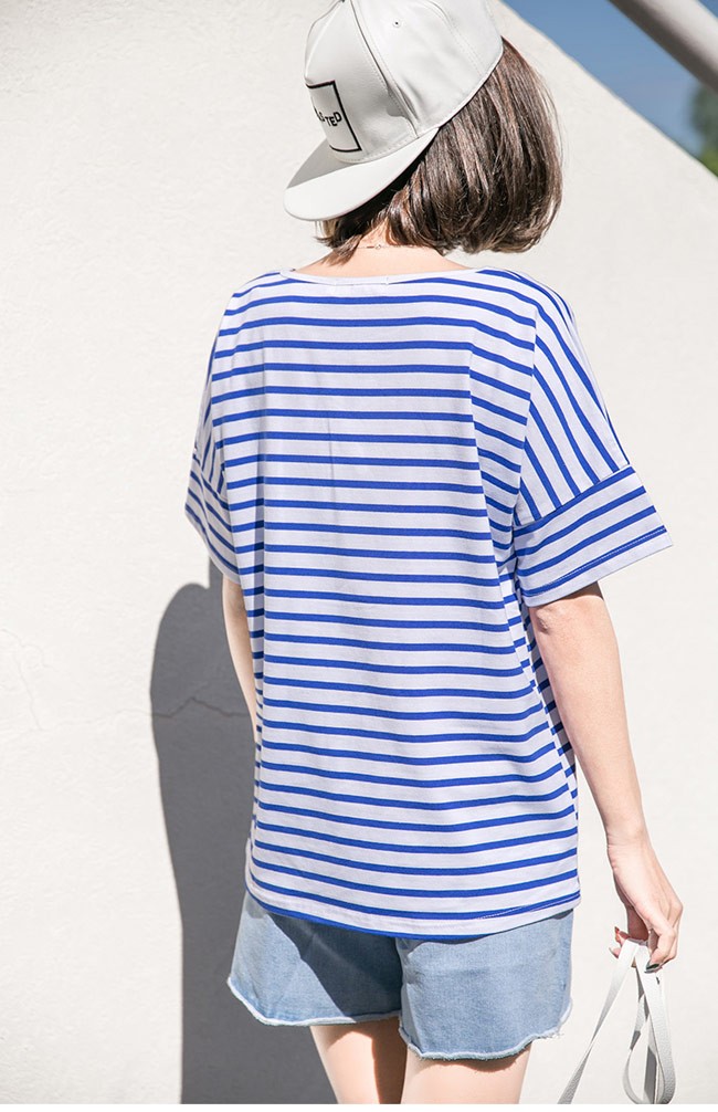 レディース用のTシャツが登場 吸湿性・通気性に優れた綿混紡素材を厳選、夏に最適な肌触りをもたらす ゆったりとしたシルエットでカジュアル感たっぷり、体型カバーも果たせる 定番のボーダー柄デザインは爽やかなマリン風を取り入れ、季節感も溢れる 配色的にもとても清潔感が感じられ、さっぱりとした視覚効果で魅せる シンプルなデザインにトレンディーなカッティングでとても気質アップ、そして着まわしも効く一枚 | |