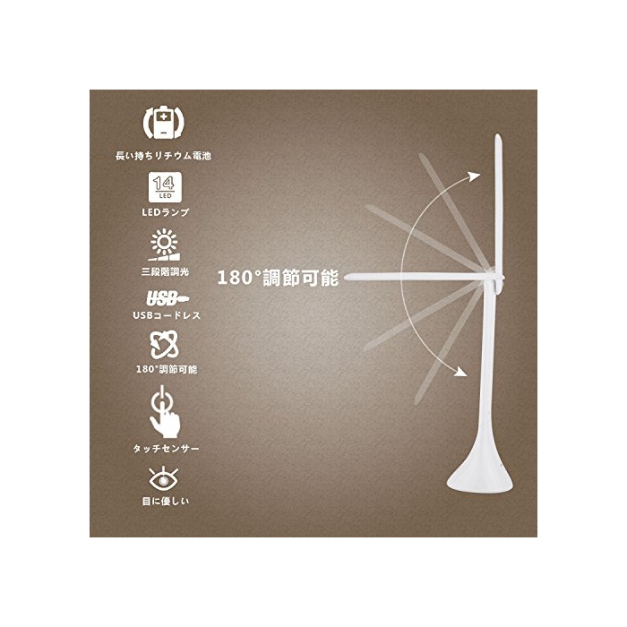 원본상품명: Vdomus LEDデスクライト 卓上スタンド 三段階調光 180°調節可能 タッチ式 USB給電可 ベッドサイド 書