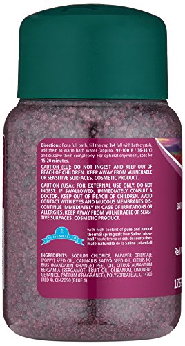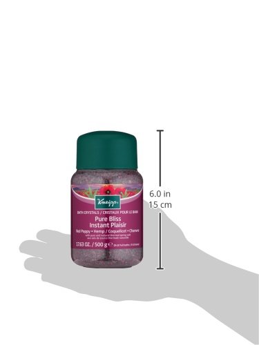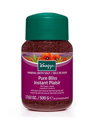 -. Binding : Health and Beauty -. Brand : Kneipp -. Department : Bath & Shower -. EAN : 9257830004628 -. Feature : Red Poppy & h.e.m.p / Relaxes the body and soul / Will provide you with an overwhelming sense of well-being and relaxation from the stress and strain of everyday life / 0 -. IsAdultProduct : 0 -. Label : Kneipp -. Manufacturer : Kneipp -. Model : KP106 -. MPN : KP106 -. PackageQuantity : 1 -. PartNumber : KP106 -. ProductGroup : Beauty -. ProductTypeName : HEALTH_PERSONAL_CARE -. Publisher : Kneipp -. Size : 17.6oz salt -. Studio : Kneipp -. Title : Kneipp Pure Bliss Mineral Bath Salt 17.6oz -. UPC : 880889868263