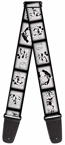 -. Title : Steamboat Willie Scene Blocks White/Black - Guitar Strap